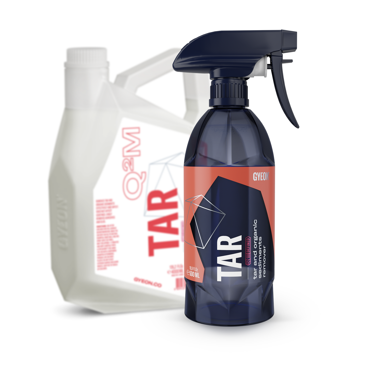 GYEON Q²M Tar REDEFINED is a pH-neutral tar remover for professional vehicle detailing. It chemically dissolves tar, tree sap, bitumen, and adhesive residues from paint, glass, and plastic. The REDEFINED version features reduced VOC content and a longer active dwell time, while maintaining high dissolving power.