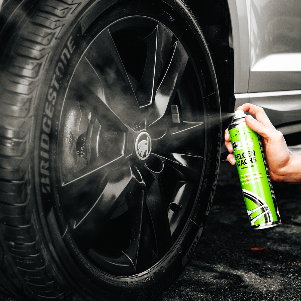 Wie lange hält der Schutz des P21S Felgen-Wachs? Der Abperleffekt und Schutzfilm halten je nach Fahrleistung und Felgenreinigung etwa 3–4 Wäschen an.