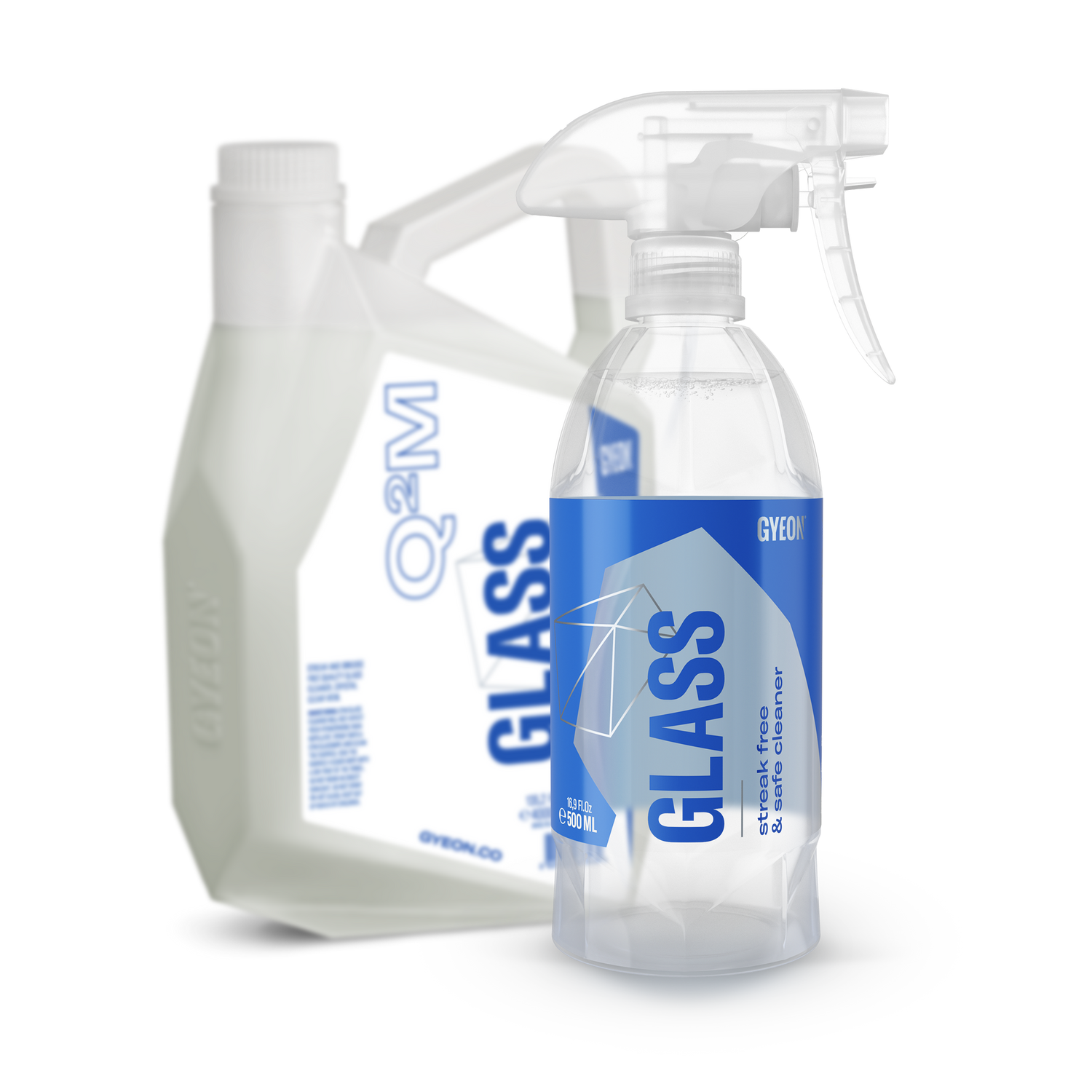 GYEON Q²M Glass ist ein leistungsstarker, streifenfreier Glasreiniger für Fahrzeugscheiben, der Fettfilme, Nikotinrückstände und Straßenschmutz schnell entfernt und eine klare, rückstandsfreie Oberfläche innen wie außen hinterlässt.
