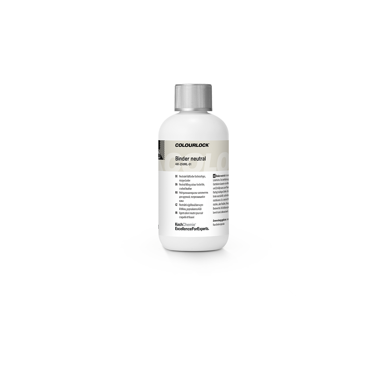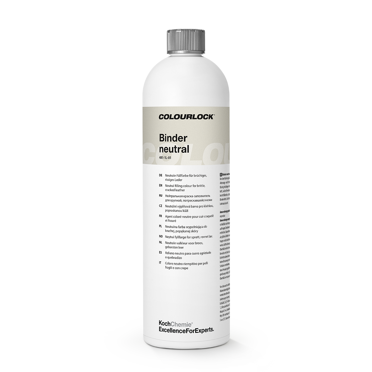 Was macht COLOURLOCK Binder Neutral? — Der neutrale Binder stabilisiert beschädigte Lederoberflächen, füllt feine Risse und Abriebstellen, stärkt die Struktur und bildet die tragende Basis, bevor farbspezifische Produkte wie Leather Fresh oder Fluid Leather aufgetragen werden.