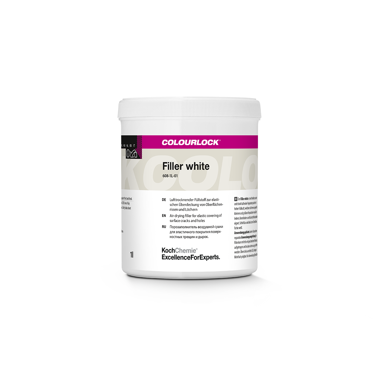 Koch-Chemie × COLOURLOCK COLOURLOCK "Filler" (White) Lufttrocknender Füllstoff zur elastischen Überdeckung von Oberflächenrissen und Löchern - 20 ml / Weiß / White ist bereits nachbestellt. Sobald alle Produkte deiner Bestellung wieder verfügbar sind, versenden wir die Ware in einer gemeinsamen Sendung. Die Lieferzeit bestimmt sich nach dem Artikel in deiner Bestellung, der die längste Lieferzeit hat.