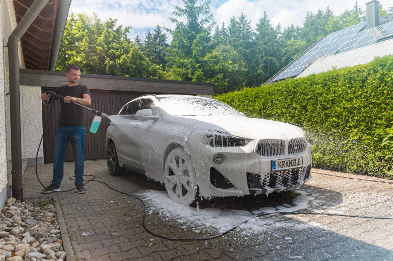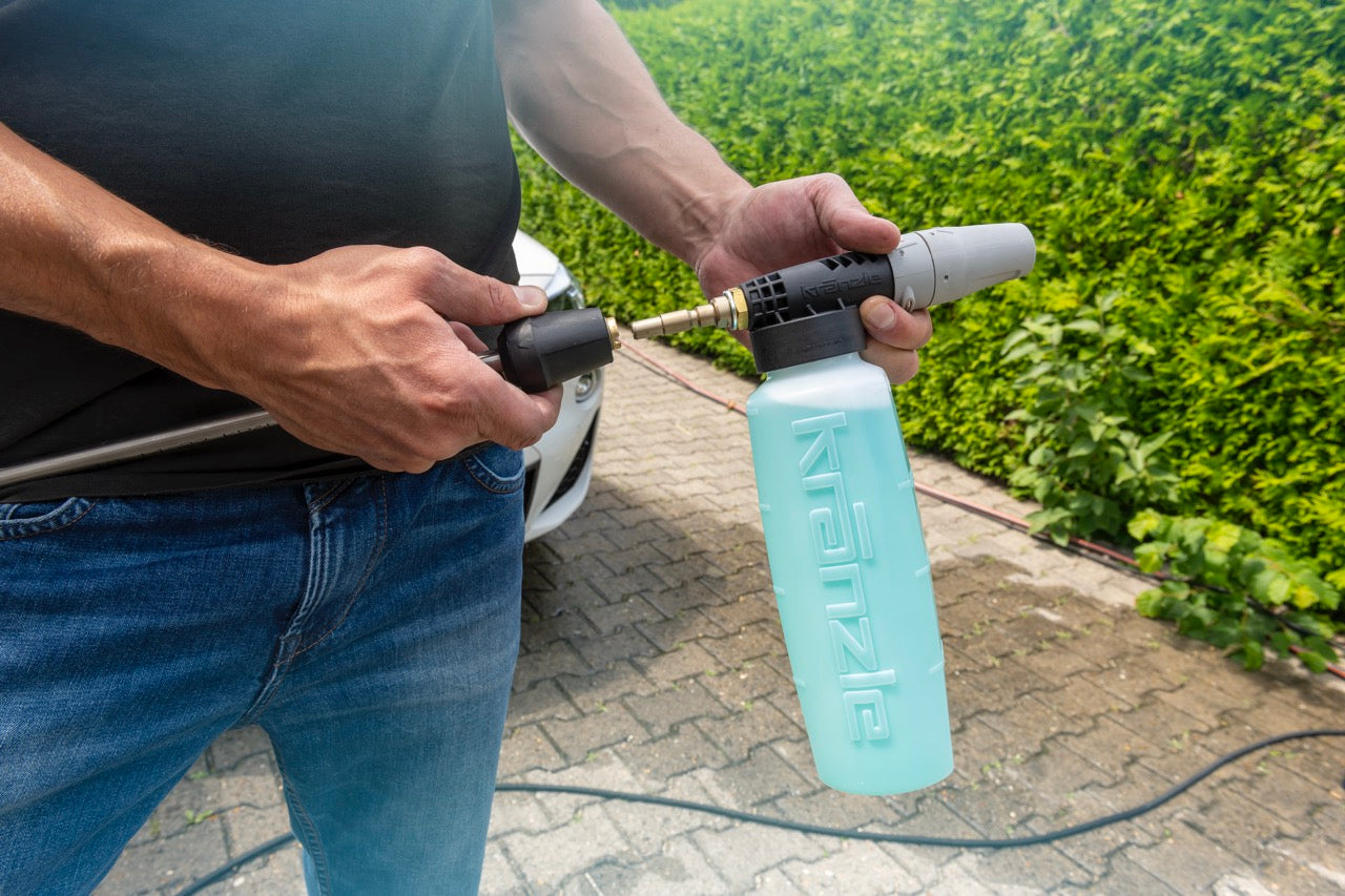 Perfekter Snow-Foam dank der Kränzle Schaumlanze mit Behälter