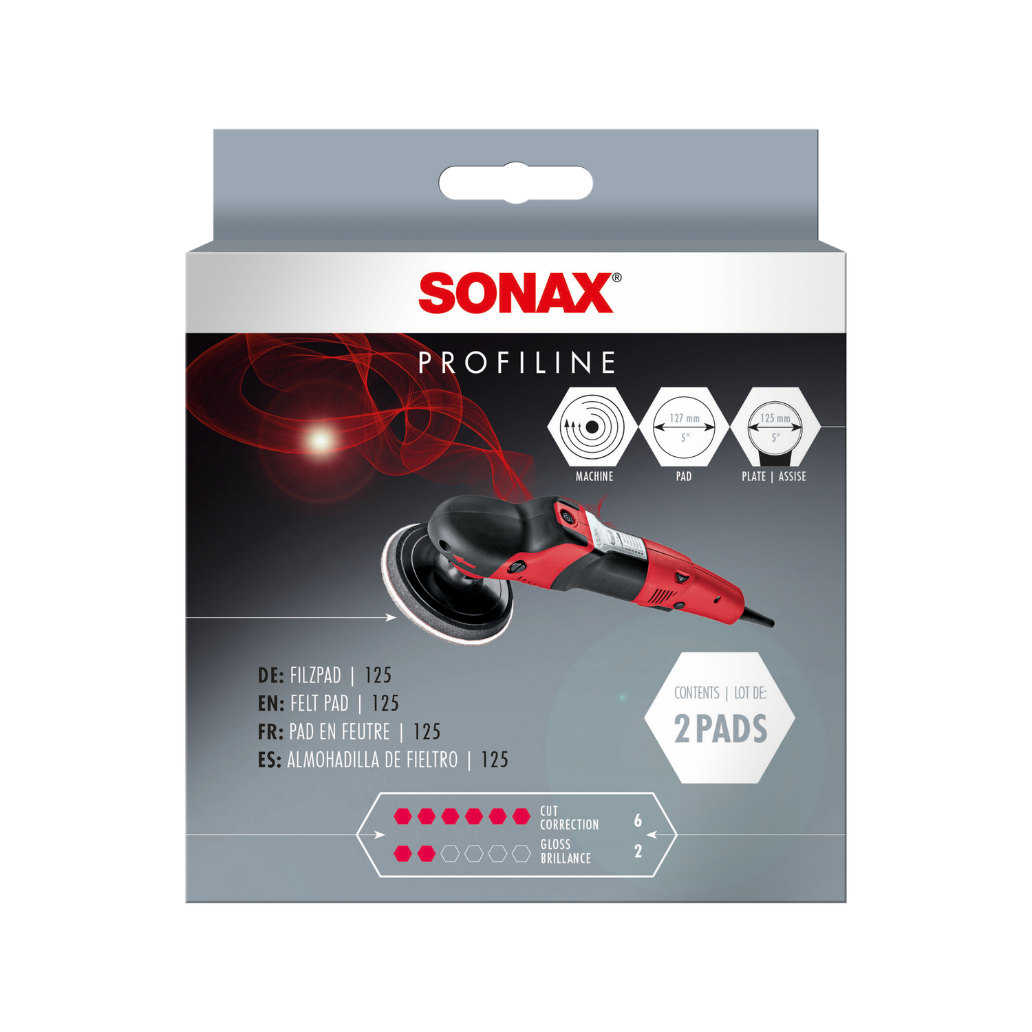 Was macht den SONAX PROFILINE FilzPad 125 besonders? Die stark abrasive Filzscheibe ist speziell für die maschinelle Verarbeitung von Glaspolituren und Schleifpasten entwickelt — auf Glas, Lack und Metallpolituren einsetzbar, wo Schaumstoffpads zu weich wären.
