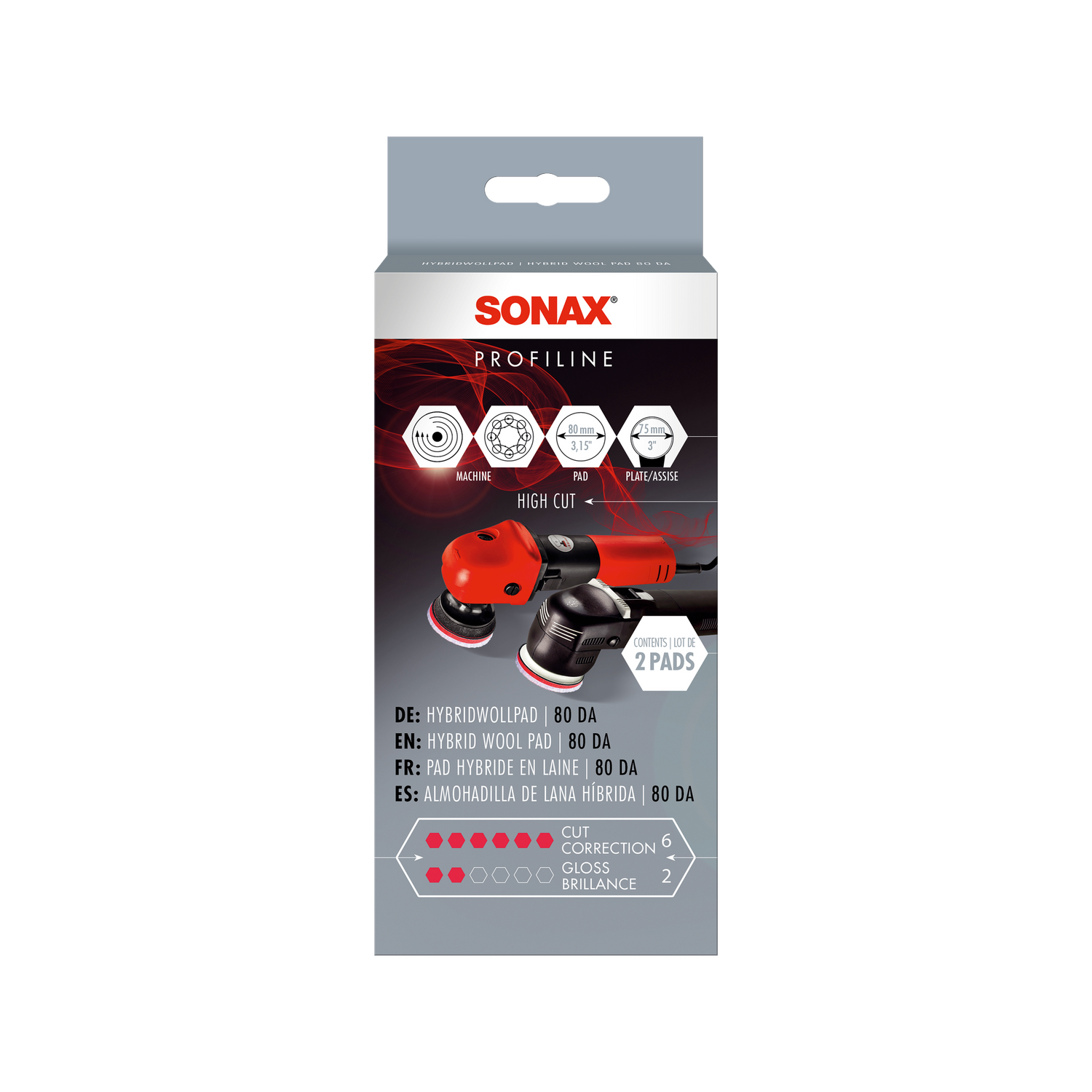 Der HybridWollPad ist für den Einsatz mit Heavy-Cut-Polituren konzipiert. Die empfohlene Kombination im PROFILINE-System ist der HybridWollPad mit der SONAX PROFILINE CutMax "6/4" Schleif-Politur oder der PROFILINE UltimateCut "6+/3" — die stärksten Polituren im Sortiment. Diese Kombinationen sind für Fahrzeuge mit schweren P800-P1000 Schleifspuren, tiefer Oxidation oder starken Hologrammen aus maschinellen Vorbehandlungen ausgelegt.